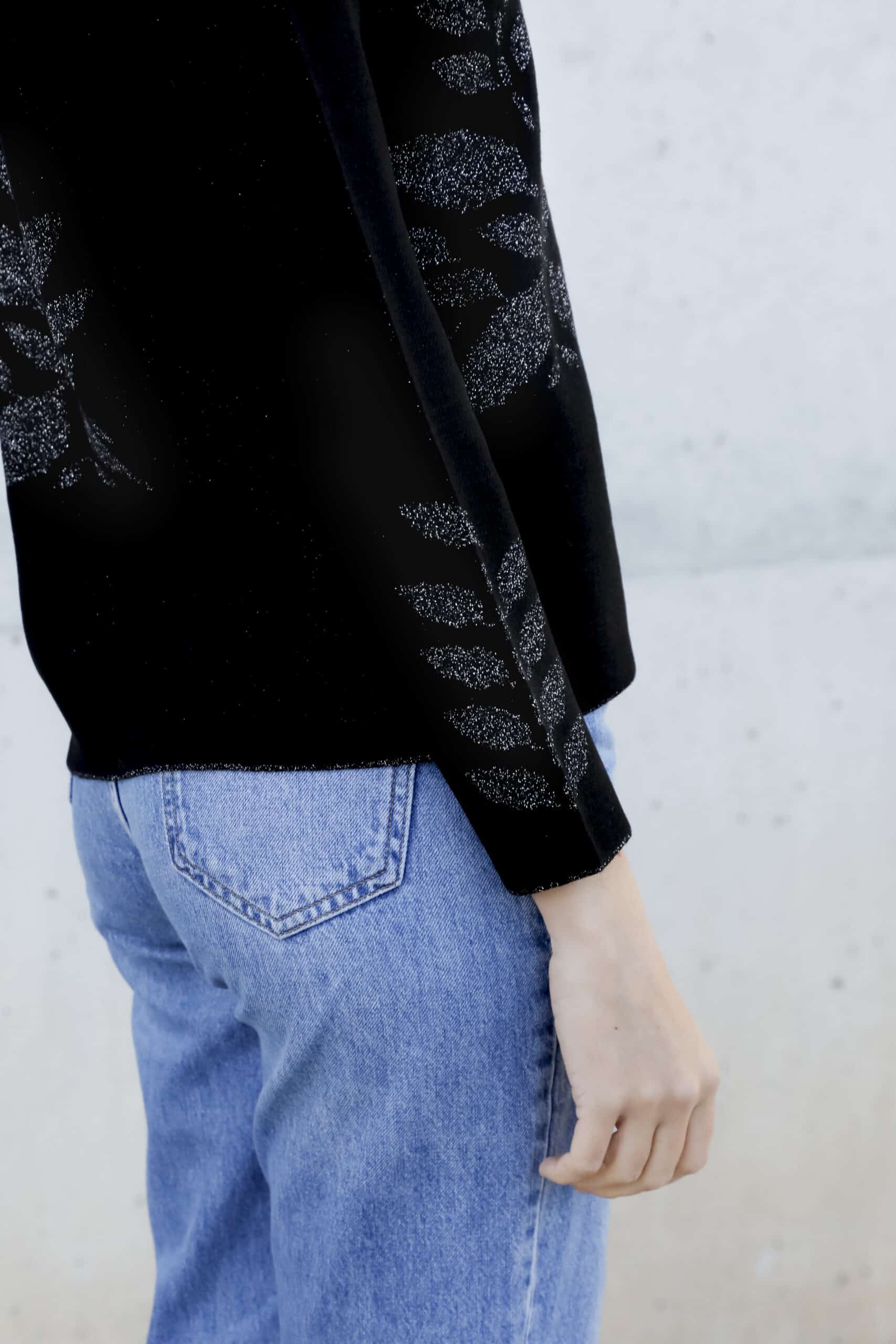 El efecto visual al combinar estos materiales es deslumbrante, donde la textura y el brillo sutil del lurex se complementan con la calidez y la comodidad de la lana.