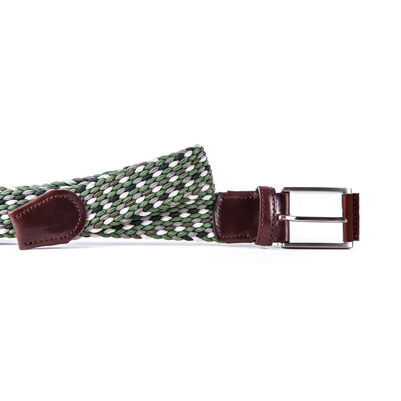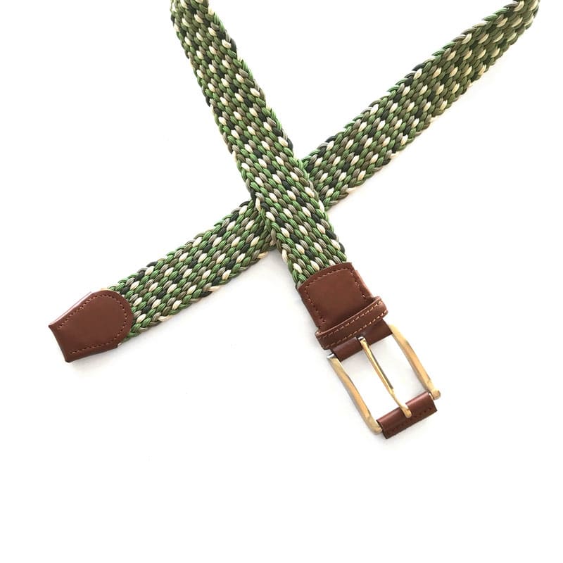 Cinturón trenzado elástico 35 mm de ancho y acabados en cuero de piel natural.